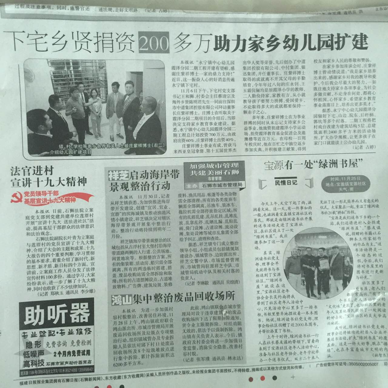 据悉,庄紫祥先生的父亲庄永钊先生是实小优秀校友,虽已旅居香港数十年,但依然心系家乡教育事业,慷慨捐资支持学校建设。在捐建实小校舍的热心乡贤芳名录上,庄紫祥先生还寻找到他父辈捐资办学的印迹。